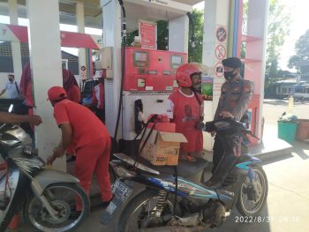 Anggota yang melaksanakan dalam giat Patroli Ps. Kanit Samapta AIPDA Muh. Charlik bersama Anggota dengan melakukan Patroli ke SPBU yang terletak di Lingkungan Kalampa, pada saat bertatap muka Petugas memberikan himbauan Kamtibmas kepada karyawan SPBU agar tetap melaksanakan koordinasi dengan pihak Kepolisian mengenai situasi Kamtibmas yang ada.