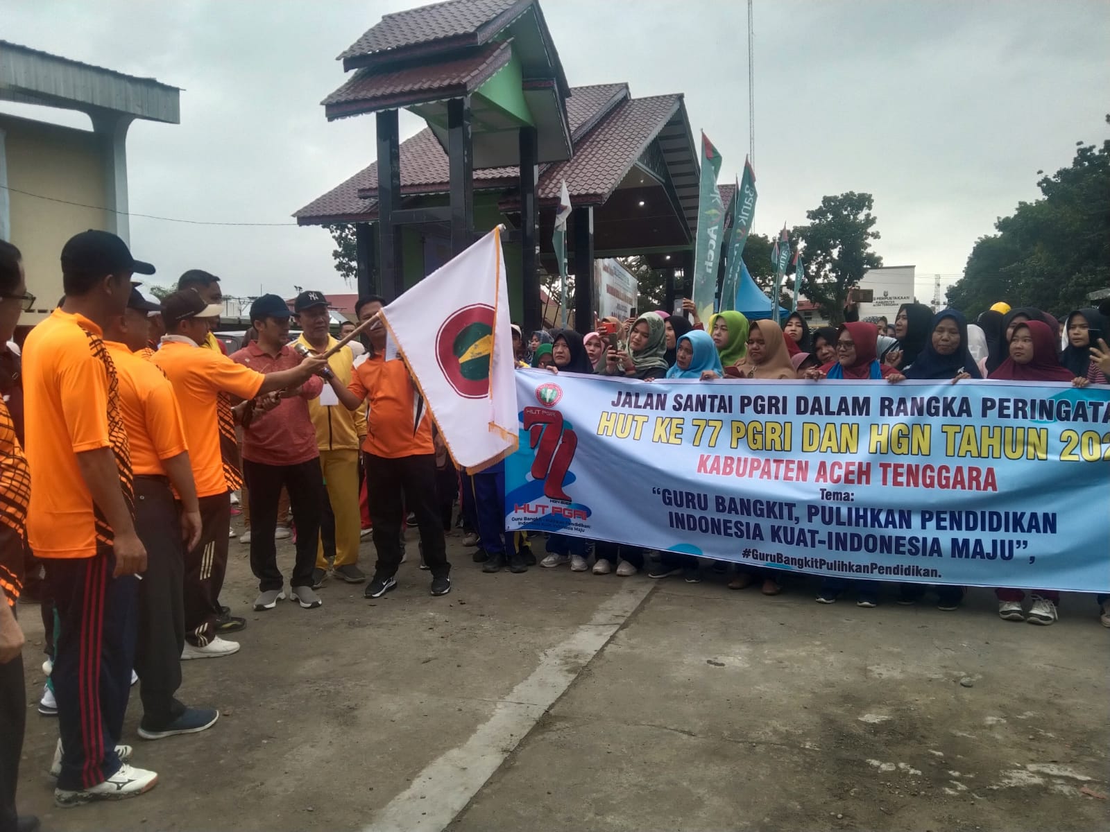 Fajarinfo.com,Kutacane,–Pada hari ulang tahun (HUT) ke 77 PGRI,dan Hari Guru Nasional (HGN) di tahun 2022 ini gelar jalan santai, dengan tema, ” guru bangkit, pulihkan pendidikan, Indonesia kuat- Indonesia maju. Acara peringatan, dan jalan santai itu digelar di pelataran parkir stadion H.Syahadat Desky Kutacane Aceh Tenggara pada Minggu (11/12) 2022.
