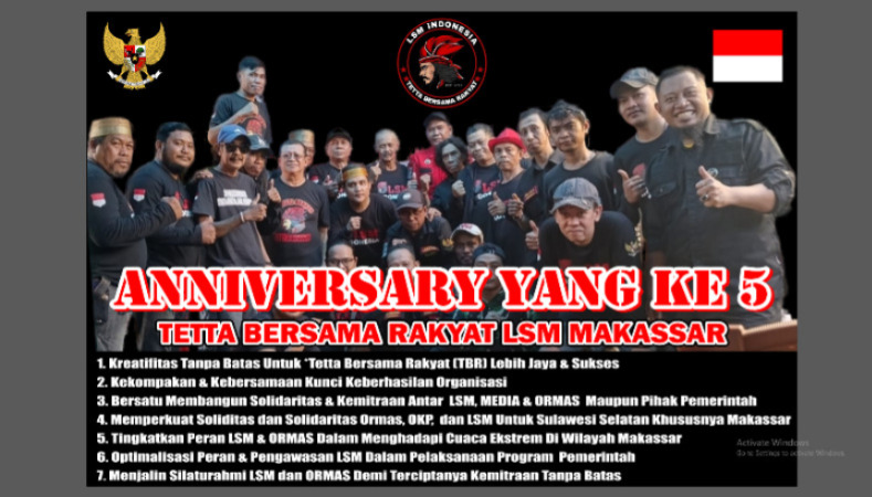 Makassar — Pimpinan Redaksi bersama seluruh crew FAJARINFOONLINE.COM menyampaikan ucapan selamat Hari Ulang Tahun (HUT) ke-5 kepada TBR (Tetta Bersama Rakyat).