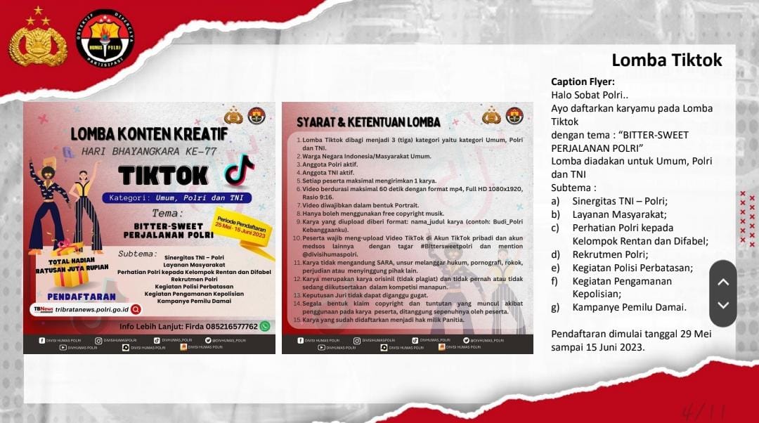 Lomba ini Memperebutkan Total Hadiah Ratusan Juta Rupiah!, Pendaftaran dapat dilakukan di website: tribratanews.polri.go.id
