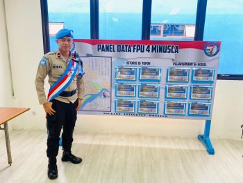 “Terimakasih kepada Polri yang telah memberikan banyak kesempatan untuk bisa mengasah diri lewat berbagai pelatihan. Melalui Lembaga Pendidikan dan Pelatihan Polri (Lemdiklat Polri), saya bisa meningkatkan kapabilitas saya sehingga bisa bermanfaat bagi orang lain dan sebagai peacekeeper. Mohon doanya semua semoga kami sebagai representasi dari Negara Republik Indonesia dan juga Polri selalu diberikan kesehatan dan keselamatan tanpa ada kendala dalam menjalankan misi ini, sehingga mandat PBB yang kami laksanakan dapat memberikan manfaat bagi masyarakat di Afrika Tengah”