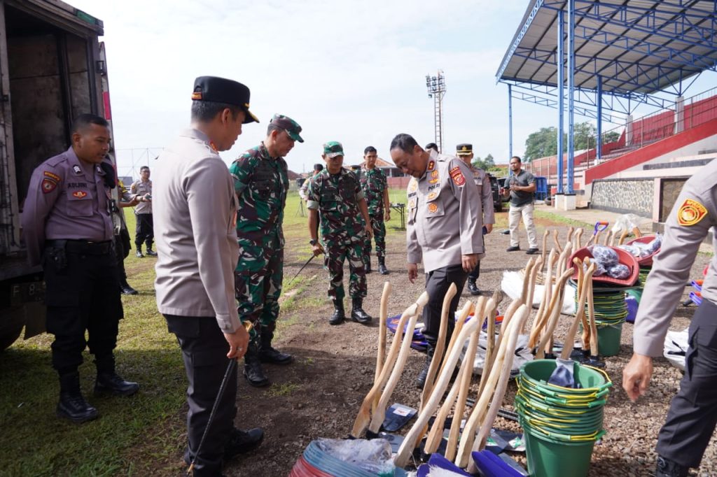 Fajarinfoonline.com,” Kapolda Jabar Irjen Pol Suntana didampingi Danrem Surya Kencana Bogor Brigjend TNI Rudy Saladin mempimpin apel gabungan recovery pasca terjadinya gempa bumi dan kesiapan penanganan serta penanggulangannya bertempat di Lapang Stadion Badak Putih Cianjur, Jumat, (9/12/2022).