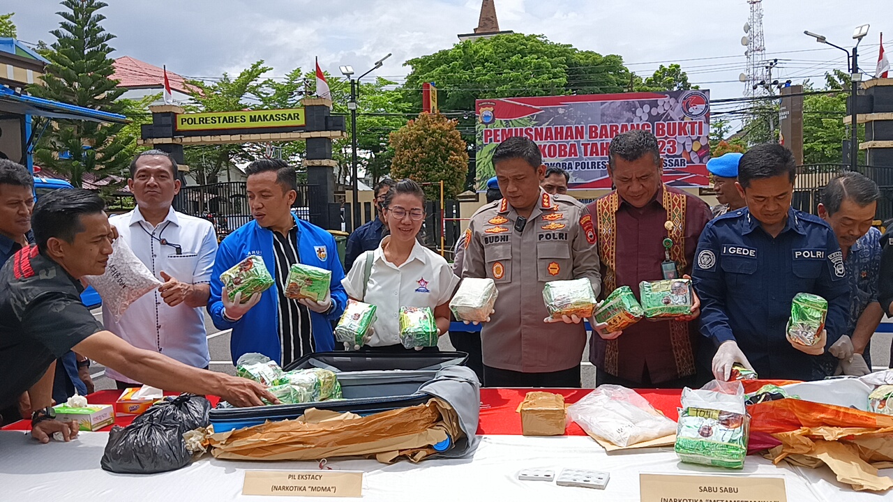 Press Rilis, Polrestabes Makassar Musnakan Barang Bukti Narkoba