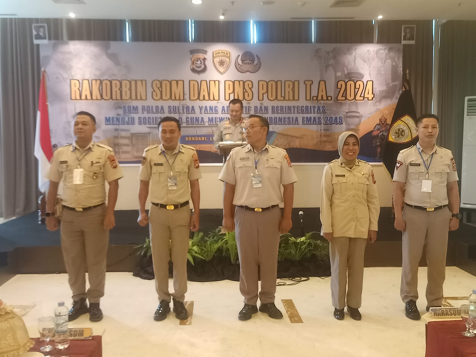 Fajarinfoonline.com,’Kendari, 13 November 2024 – Biro SDM Polda Sultra menggelar Rapat Koordinasi Pembinaan (Rakorbin) PNS Polri Polda Sulawesi Tenggara dibuka hari ini oleh Kepala Biro SDM Polda Sultra, Kombes Pol. Arief Fitrianto, S.H., S.I.K., M.M. Mengangkat tema “SDM Polda Sultra yang Adaptif dan Bersinergitas Menuju Society 5.0 Guna Mewujudkan Indonesia Emas 2045,” Rakorbin ini diikuti oleh 229 PNS Polri Polda Sultra, baik secara langsung maupun melalui platform daring.