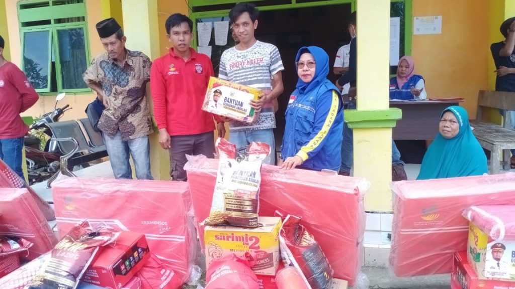 Giat penyaluran paket bantuan tanggap darurat dipimpin dan dihadiri Kepala Dinas Sosial, Hj. Satmawati., M. AP yang didampingi Sekretaris, Andi Jerniati, S. IP, dan jajaran tagana. (FS)