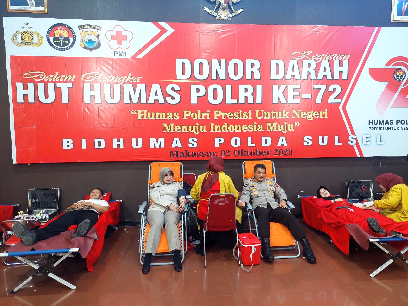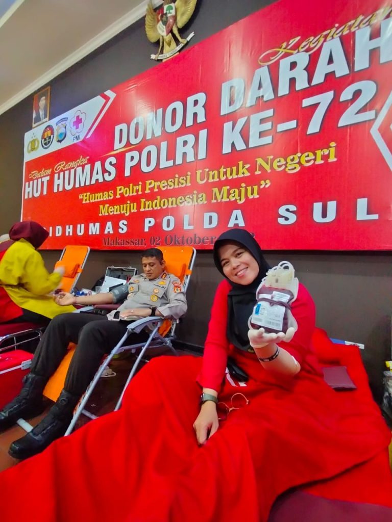 Fajarinfoonnline.com,”Bidang Hubungan Masyarakat (Bidhumas) Polda Sulsel bekerjasama dengan PMI Sulsel kembali melaksanakan bakti kesehatan berupa donor darah. Kegiatan tersebut dilaksanakan dalam rangka HUT ke 72 Humas Polri tahun 2023.