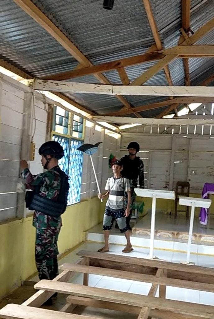 Pos Koki B/Mindiptana menyiapkan 9 orang dengan Sertu Gana sebagai Dantim untuk melaksanakan Pengecetan di Gereja Katolik Santo Yohanes, Agar mereka (Jemaat Kp. Andokbit) dapat lebih merasakan suasana yang nyaman saat melaksanakan ibadah di Gereja Santo Yohanes.