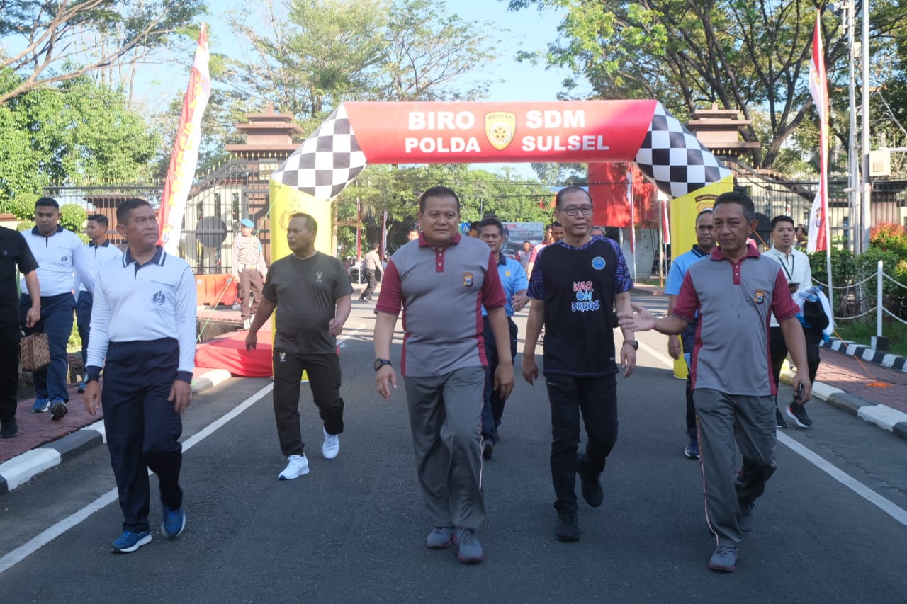 Dengan semangat ‘Sinergitas TNI Polri’, terlihat Kapolda Sulsel Irjen Pol Drs. Setyo Boedi Moempoeni Harso, S.H., M.Hum dan Wakapolda Sulsel, Irwasda serta seluruh PJU Polda Sulsel berbaur dengan Ratusan personil TNI dan personil Polda Sulsel, bersemangat melakukan kegiatan jalan santai.