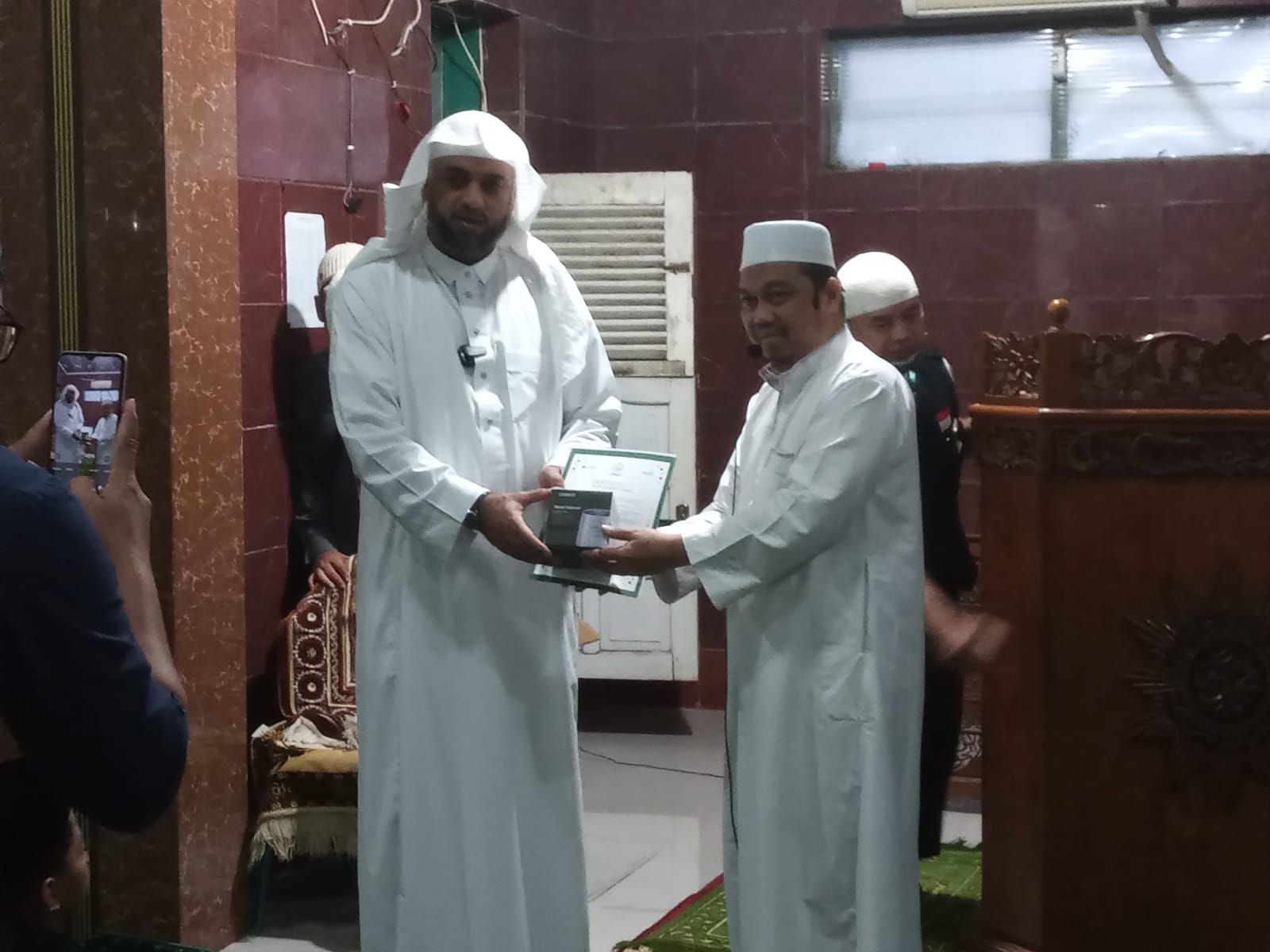 Di akhir pertemuan Syekh Ali Jaber memberi kenang-kenangan berupa Mudd Nabawi lengkap dengan sertifikat yang sudah di tandatangani oleh Syekh Ali Jabir , serta melakukan foto bersama .