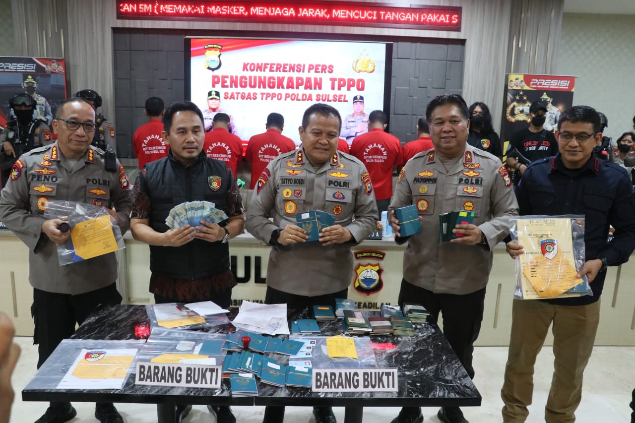 Fajarinfoonline.com,”Kapolda Sulsel Irjen Pol Drs. Setyo Boedi Moempoeni Harso, S.H., M.Hum. didampingi Wakapolda Sulsel Brigjen Pol. CH Patoppoi, S.St.M.K., S.H dan Pejabat Utama Polda Sulsel memimpin Penandatanganan Kesepakatan Bersama antara Satgas Tindak Pidana Perdagangan Orang (TPPO) Polda Sulsel dengan Instansi Terkait, Jumat (23/06/23). Penandatanganan tersebut dilakukan bersama Pemprov Sulsel, BP3MI Prov Sulsel, Kanwil Kemenkumham Ri … Baca Selengkapnya