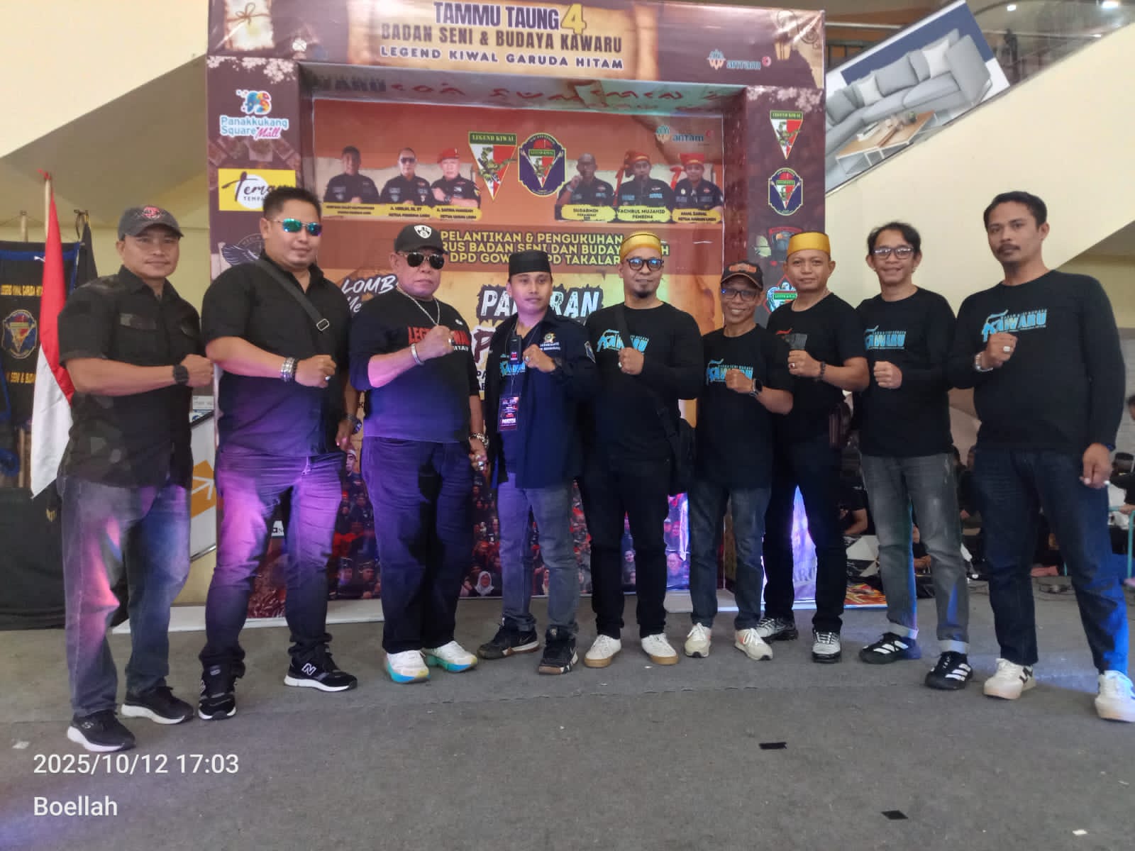 Fajarinfoonline.com,”Makassar– Kegiatan Tammu Taung ke-4 yang diselenggarakan oleh Badan Seni dan Budaya Kawaru Legend Kiwal Garuda Hitam sukses digelar di Panakkukang Square Makassar selama dua hari, 11–12 Oktober 2025. Acara ini menampilkan berbagai lomba dan pertunjukan budaya yang melibatkan masyarakat umum, pelajar, serta seniman lokal.