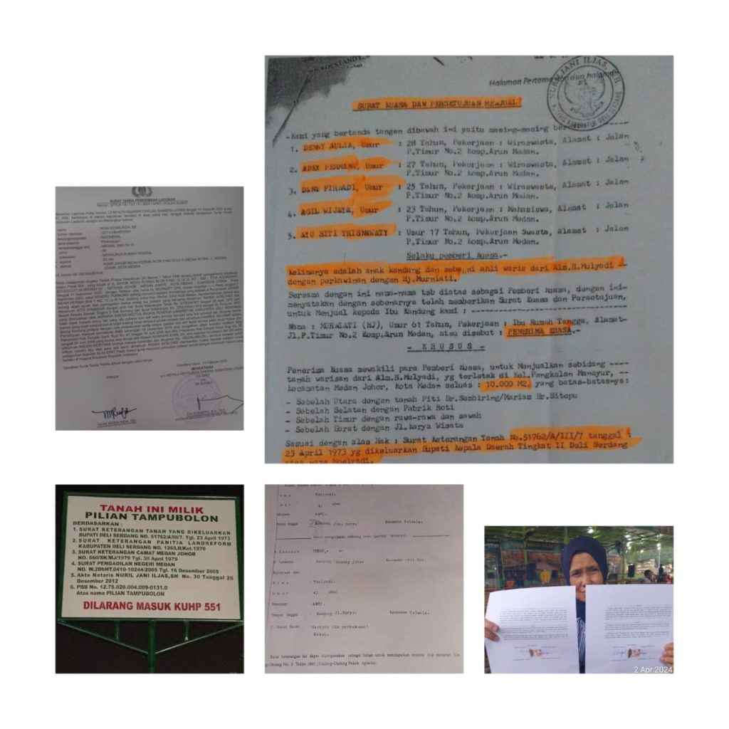 Salah satu ahli waris dari Alm Raden Moelyadi, Rosalinda, mengatakan bahwa kasus mafia tanah ini sudah dilaporkannya ke Polda Sumut dengan tiga terlapor yaitu MT yang merupakan istri sirih Alm Raden Moelyadi dan dua oknum notaris berinisial NI dan AGS dengan nomor laporan LP/B/167/II/2024/SPKT/Polda Sumut.