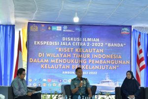 Diskusi ilmiah dengan tema “Riset Kelautan di Wilayah Timur Indonesia dalam mendukung Pembangunan Kelautan Berkelanjutan” tersebut dibuka oleh Komandan Pushidrosal (Danpushidrosal) Laksamana Madya TNI Nurhidayat, dengan menghadirkan para pemapar dari peneliti yang terlibat  dalam Ekspedisi Jala Citra II – 2022 “Banda”, yaitu Peneliti dari Pushidrosal (Chief Scientist Etape 1) Kapten Laut (P) Affan Fadhilah, ST, M.Sc, Peneliti Pusat Riset Kelautan, BRSDM, Kementerian Kelautan dan Perikanan (Chief Scientist Banda Naira) Triyono, M.T, Peneliti Balai Besar Survei dan Pemetaan Geologi Kelautan, Kementerian ESDM Dr. Luli Gustiantini dan Peneliti Pushidrosal  (Chief Scientist Etape 2) Kapten Laut (KH) I Wayan Sumardana, M.Si,serta  Ir. Irma Kesaulya, M.Sc Ph.D Peneliti Universitas Pattimura.