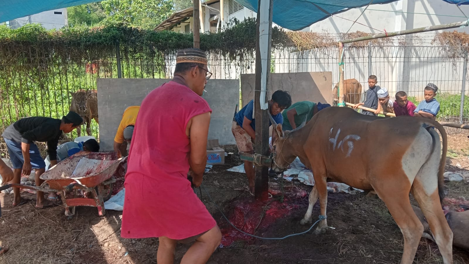 “Alhamdulillah, tahun ini kami dapat menyembelih 10 ekor hewan kurban yang merupakan hasil gotong royong warga. Setelah dibagikan kepada pekurban, daging juga kami salurkan ke masyarakat sekitar Dusun Bugis agar manfaatnya bisa dirasakan secara luas,” ujar H. Abd. Gaffar.
