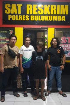 Dari kejadian tersebut Polres Bulukumba melalui unit Jatanras Satreskrim bersama Satintelkam Polres Bulukumba melakukan serangkaian penyelidikan atas laporan korban dan berhasil mengamankan seorang terduga pelaku di salah satu penginapan atau Wisma yang berada di Jalan Pisang Kelurahan Loka Kecamatan Ujung Bulu Kabupaten Bulukumba.