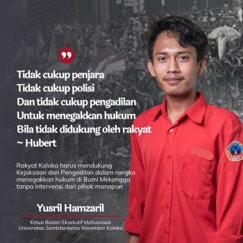 Terakhir, mahasiswa Fakultas Hukum ini meminta agar semua elemen masyarakat mendukung dan mempercayakan proses hukum yang tengah berjalan.
