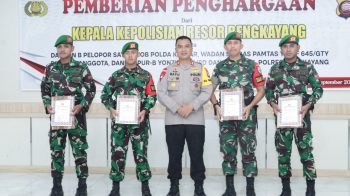 fajarinfo@online.com,” Bengkayang, Kalbar – Atas keberhasilan dalam mencegah dan menggagalkan penyelundupan peredaran Narkotika di wilayah Bengkayang, Wakil Komandan (wadan) Satgas Pamtas RI-MLY Yonif 645/GTY Kapten Inf Agus Dwi Prabowo terima penghargaan dari Kapolres Bengkayang Polda Kalbar AKBP Dr. Bayu Suseno, S.H., S.IK, M.M, M.H. Pemberian penghargaan dilakukan di Aula Polres Bengkayang.