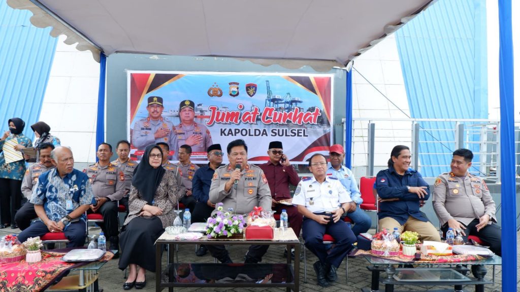 Fajarinfoonline.com,” Wakapolda Sulsel Brigjen Pol Chuzaini Patoppoi menggelar kegiatan Jumat Curhat di Kantor Otoritas Pelabuhan Unit Pelabuhan Paotere Makassar, Jumat (27/1/2023). Giat ini guna menerima curhatan warga masyarakat pelabuhan Kota Makassar.