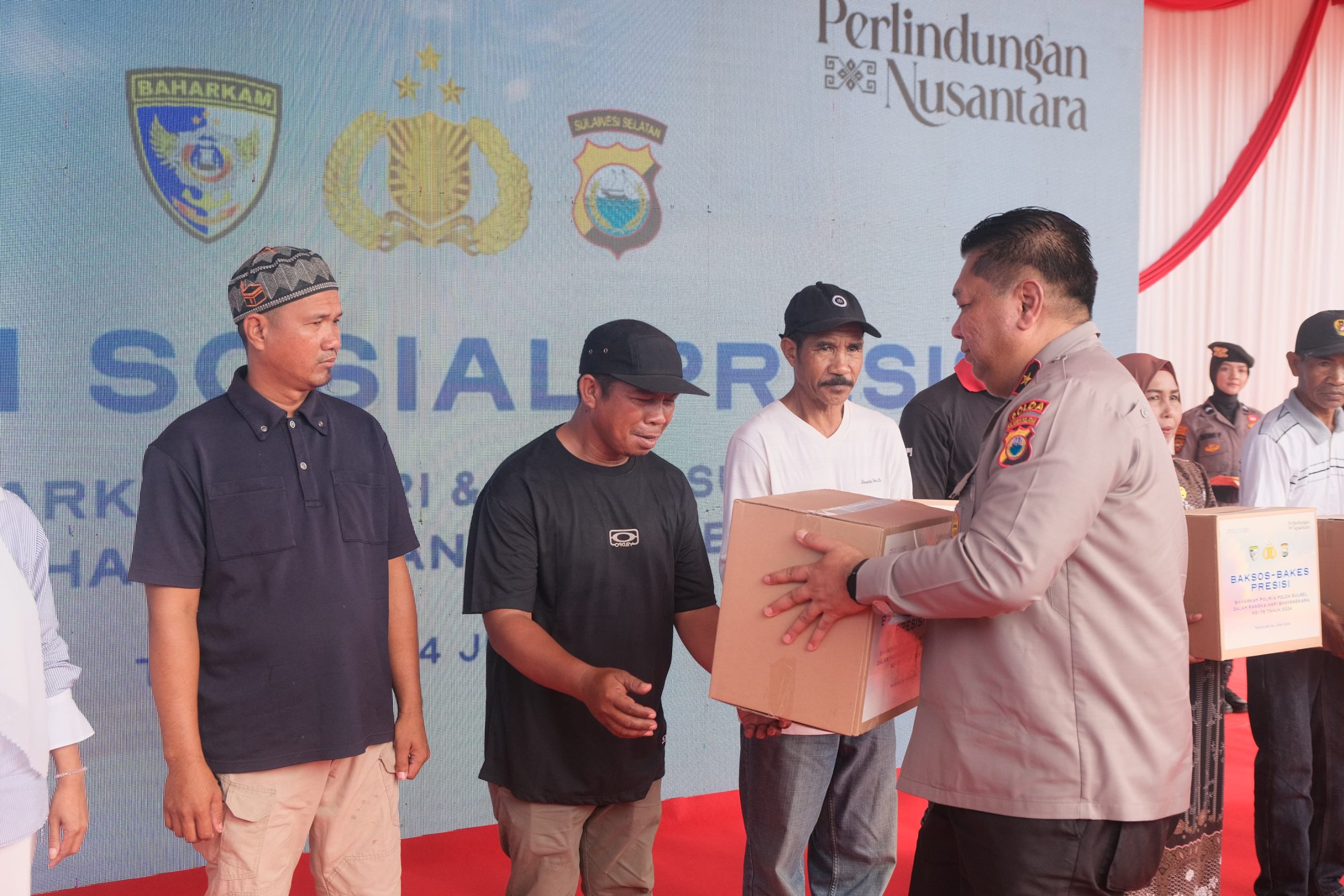 Fajarinfoonline.com,” Wakapolda Sulsel Brigjen Pol. CH Patoppoi, S.St., M.K., S.H. , bersama Pejabat Utama (PJU) Polda Sulsel, serta Kapolres Takalar menghadiri Bakti Sosial (Baksos) dan Bakti Kesehatan di Galesong Utara, Kab.Takalar, Selasa (04/06).Kegiatan ini juga dihadiri langsung Kakorsabhara Baharkam Polri Irjen Pol. Hary Sudjiwanto, S.I.K., M.Si. dan Kakorpolairud Baharkam Polri Irjen Pol M. Yassin Kosasih, S.I.K., M.Si., M.Tr.Opsla serta Kakorbinmas Baharkam Polri Irjen Pol. Roycke Harry Langie, S.I.K., M.H. beserta sejumlah Pejabat lainnya.Dalam sambutannya, Wakapolda Sulsel menyebut Bansos sembako yang disalurkan yakni 2.000 paket dan diberikan masyarakat yang berhak menerimanya.Selain itu, lanjutnya, Pelayanan kesehatan diberikan terhadap 850 orang, dengan rincian Pengobatan umum, Konsultasi Spesialis dan Bedah Minor sebanyak 650 orang, Sunatan massal 100 anak, Stunting 100 anak dan Layanan Lab sederhana dan obat-obatan.Lebih lanjut, Wakapolda Sulsel menjelaskan kegiatan ini dalam rangka memperingati Hut Bhayangkara Polri yang ke – 78, sekaligus dalam rangkaian Rakernis Baharkam Polri yang akan dilaksanakan di Makassar pada tanggal 5 sampai dengan 7 Juni 2024.Dia mengatakan, Bakti sosial dan bakti kesehatan ini merupakan wujud dari rasa kemanusiaan antara sesama manusia untuk saling peduli, saling menolong, kepada masyarakat yang membutuhkan, sehingga memberi manfaat Positif bagi kita bersama terutama dalam meningkatkan kesehatan masyarakat Sulsel.”Mari kita lakukan giat ini, dengan penuh keikhlasan dan semangat gotong-royong sehingga menjadi berkah bagi kita semua, keluarga dan masyarakat sulawesi selatan khususnya masyarakat kab. Takalar di Galesong Utara,”ungkap Wakapolda Sulsel.Dalam kesempatan itu, Wakapolda Sulsel mengucapkan terima kasih yang sebesar-besarnya kepada seluruh tenaga kesehatan, pihak rumah sakit, seluruh panitia kegiatan, serta segenap stakeholder yang turut mendukung terlaksananya bakti sosial dan kesehatan.