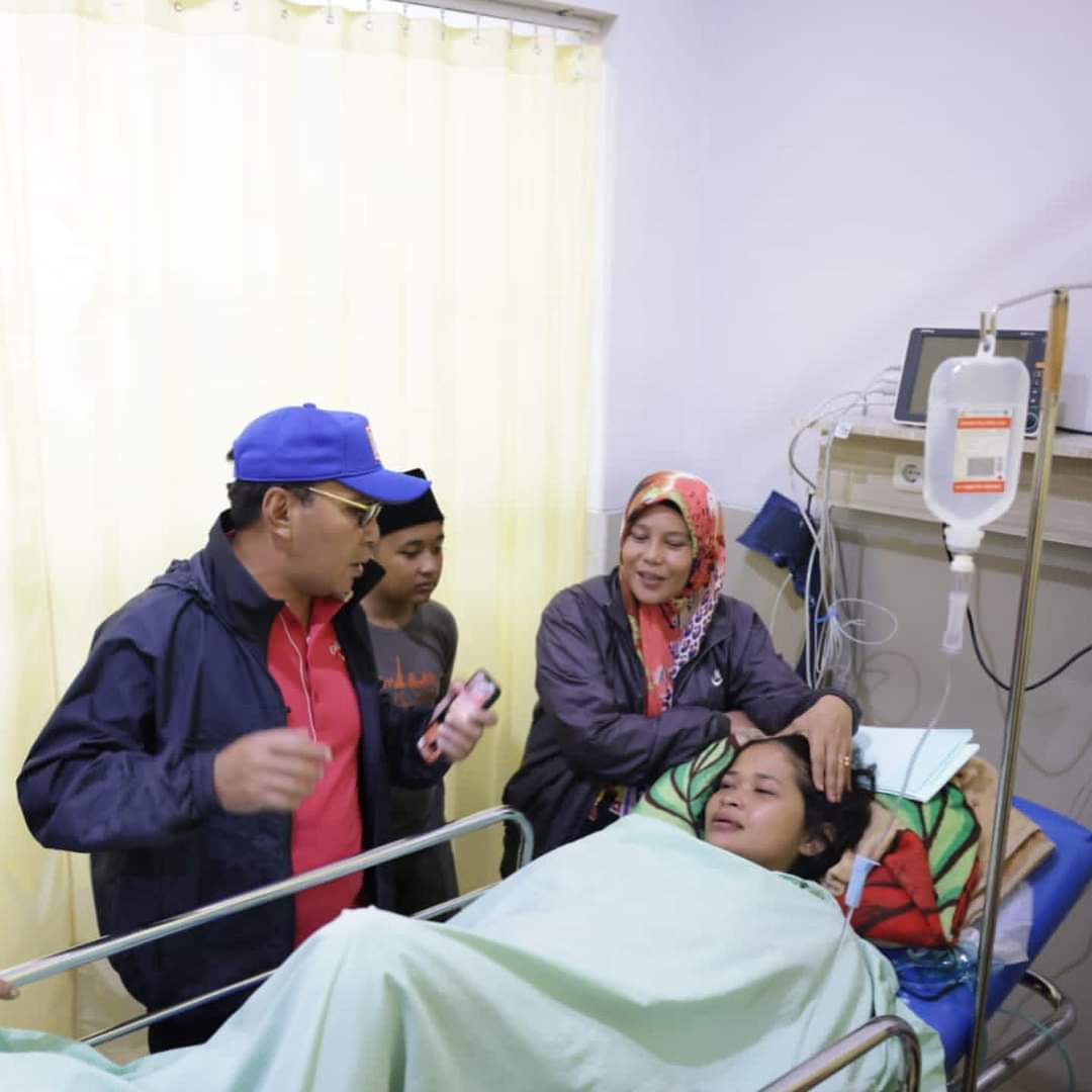 Fitri mengalami luka pada kaki. Di sebelahnya ada korban lainnya, Martinus. Lelaki ini mengalami benturan. “Semangatki untuk sembuh, saya sudah telepon kadinkes untuk menangani perawatan ini,” ucapnya kepada Martinus.